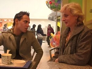 Eldre blond kvinne med kort hår har vill sex med en yngre hingst fra nabolaget sitt