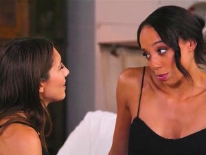 Ektemann tatt kone kysser mørkebrun kjæreste og la dem ha sex. Blondie Anna Claire Skyer blir intim med svart venn Alexis Tae. Jenter kysser lidenskapelig når mannen kommer hjem. Han bare sitter ved siden av dem og begynner å se hvordan kone slikker fitte