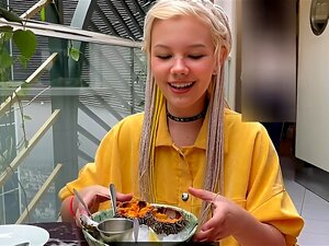 cutie barnevakt knullet av gift par. cutie rask tar en test for en barnevakt jobb.Kona ber henne om å gi mannen sin blowjob mens hun onanerer med en dildo.Petite babe striper naken så begynner å suge hans store kuk.Fyren knuller den barberte fitta hennes