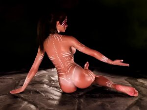 Utspekulerte Lara Croft-stillinger med rituell kroppsmaling for å berolige gravvoktere