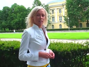 Servitør viser pornoferdigheter i casting, Sexy blond Euro-servitør kler av seg rosa kjole og får deretter stor kuk fra falsk agent på sofaen bare i strømper til hun får fitte creampie