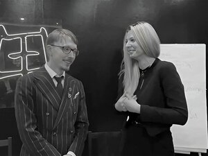 Kneblet blond anal BDSM knullet i trekant. Blond trainee Emma Haize med spider gag ser på mester knulle kollegaen Cherry Torn og deretter få anal knull mens hun knuller busty Milf med gag-kuk