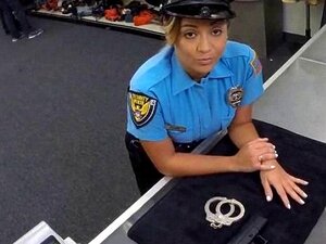 Politibetjent med store pupper pantsetter fitta hennes og blir knullet. Politibetjent med store puper pantsetter fitta henne og blir knullet med pervers bondeholder for penger