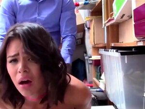 MILF butikktyv Mandy Rhea får ansiktsbehandling etter sex med sikkerhetsvakt. Tynn MILF tatt for å stjele og ble knullet i bakrommet. Sikkerhetsfyren sprutet på ansiktet hennes etter skitten runking på bordet